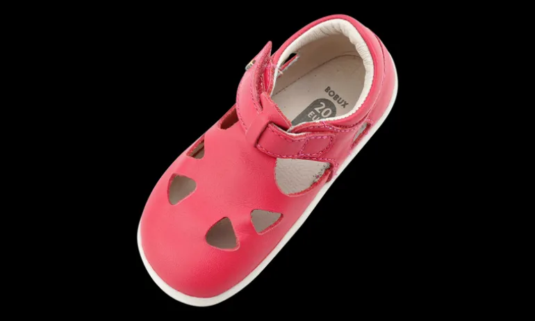 Bobux Zap has a fast-drying leather upper. The toe of the Zap sandal is left unlined to optimise the quick-dry effect, while the heel is lined and padded for optimal comfort. Little toes are protected by the Zap’s closed-toe design, with breathability provided by stylish cut outs. Suitable for confident walkers, this style fits true to size.