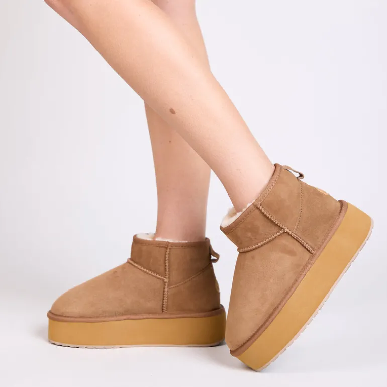 Emu Australia’s Stinger Micro Flatform, a twist on the classic Australian sheepskin boot. Crafted from water-resistant, double face sheepskin, these boots effortlessly blend the latest street style with a fashionable 5cm platform heel.