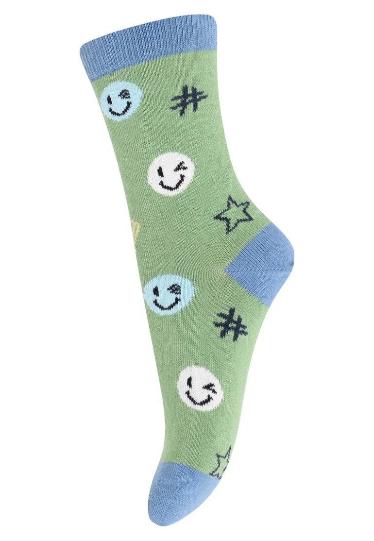 fun doodles: smiley faces, badminton balls, stars, lightnings and hashtags, all in bright, complementing colours.