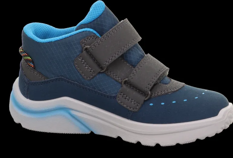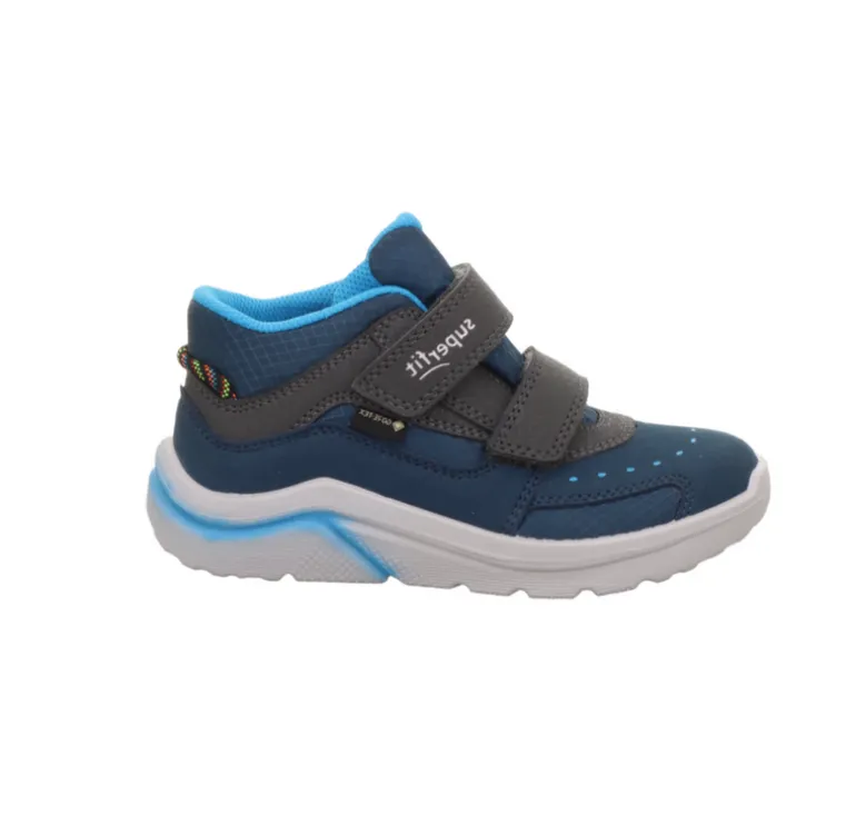 Superfit Kicks is a waterproof trainer in blue and light blue detail. Made with Gore-Tex, making it fully waterproof and breathable. Perfect for all year! as the breathable membrane helps cool the feet down on those hotter days.
